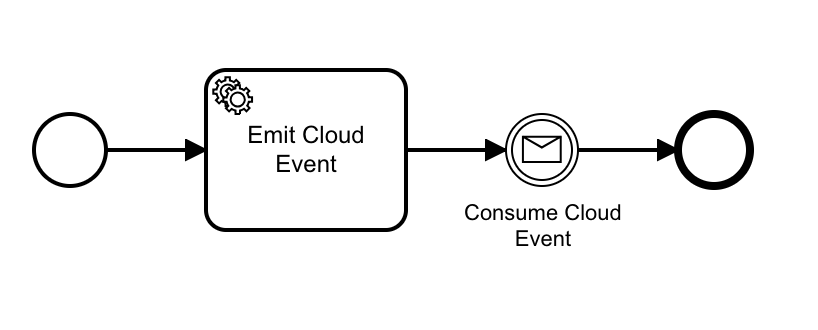 The following example uses these three patterns to illustrate how to emit and consume Cloud Events from a BPMN Workflow. You can find the BPMN model here.