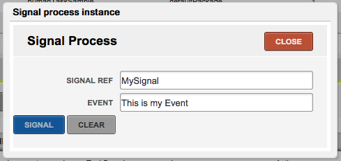 From the Process Instance List you will be able to signal events. The Events List will be retrieved based on the process definition and the Signal Ref suggestion box list you all the events related with the selected Process Instance.