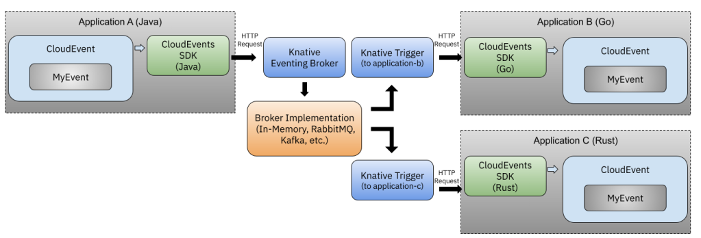 While producing and consuming CloudEvents is the first step and very important for developers building distributed and event-driven applications, routing these events around in a reliable way is not a simple task. Isolating the complexity of the infrastructure required to route events without increasing the complexity of the tools that developers will need to use is key to speed up the delivery of software components and to enable developers to keep their stack of choice simple and independent of the underlying transport protocols (HTTP, AMQP) used to delivery events from one service to another.