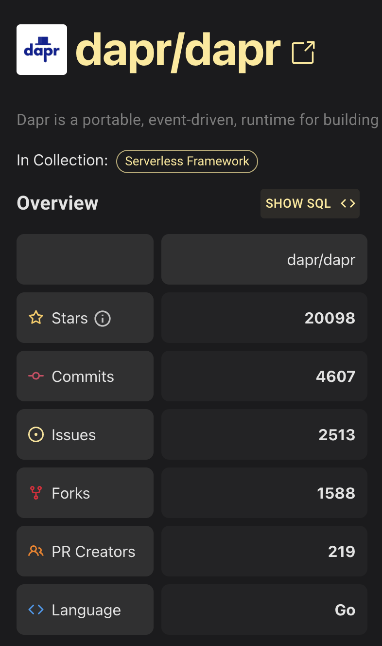 Here are some stats from the project from OSSInsight.io