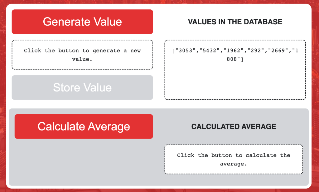At the end of the tutorial, you should be able to enable your users to calculate the average of all the values by calling a function from your application user interface: