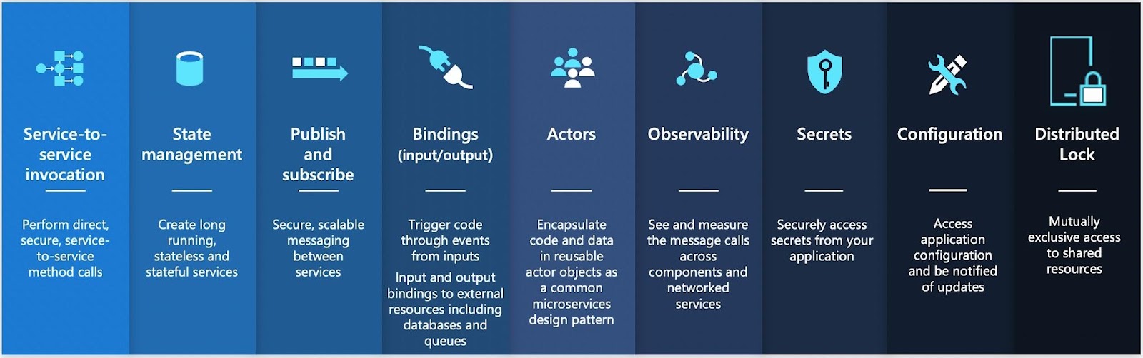 - Observability: if you are running distributed applications you need to have a way to understand what is going on when things go wrong. Dapr allows you to configure in a declarative way how tracing, metrics, and logs are collected.